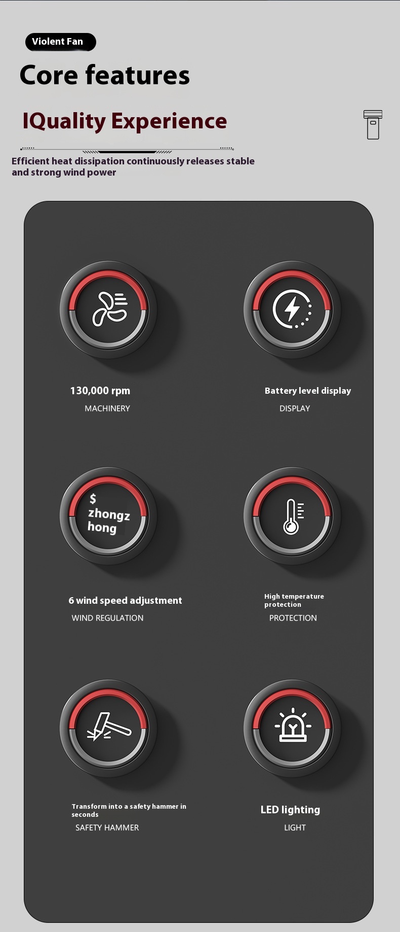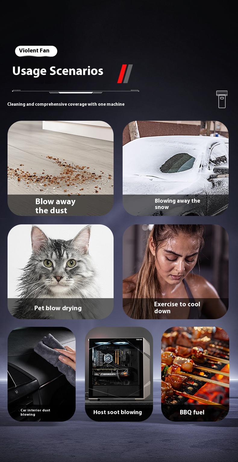High-power High-speed Turbine Dust Removal Snow Blowing Emergency Lighting Rescue Broken Window Hammer Fan